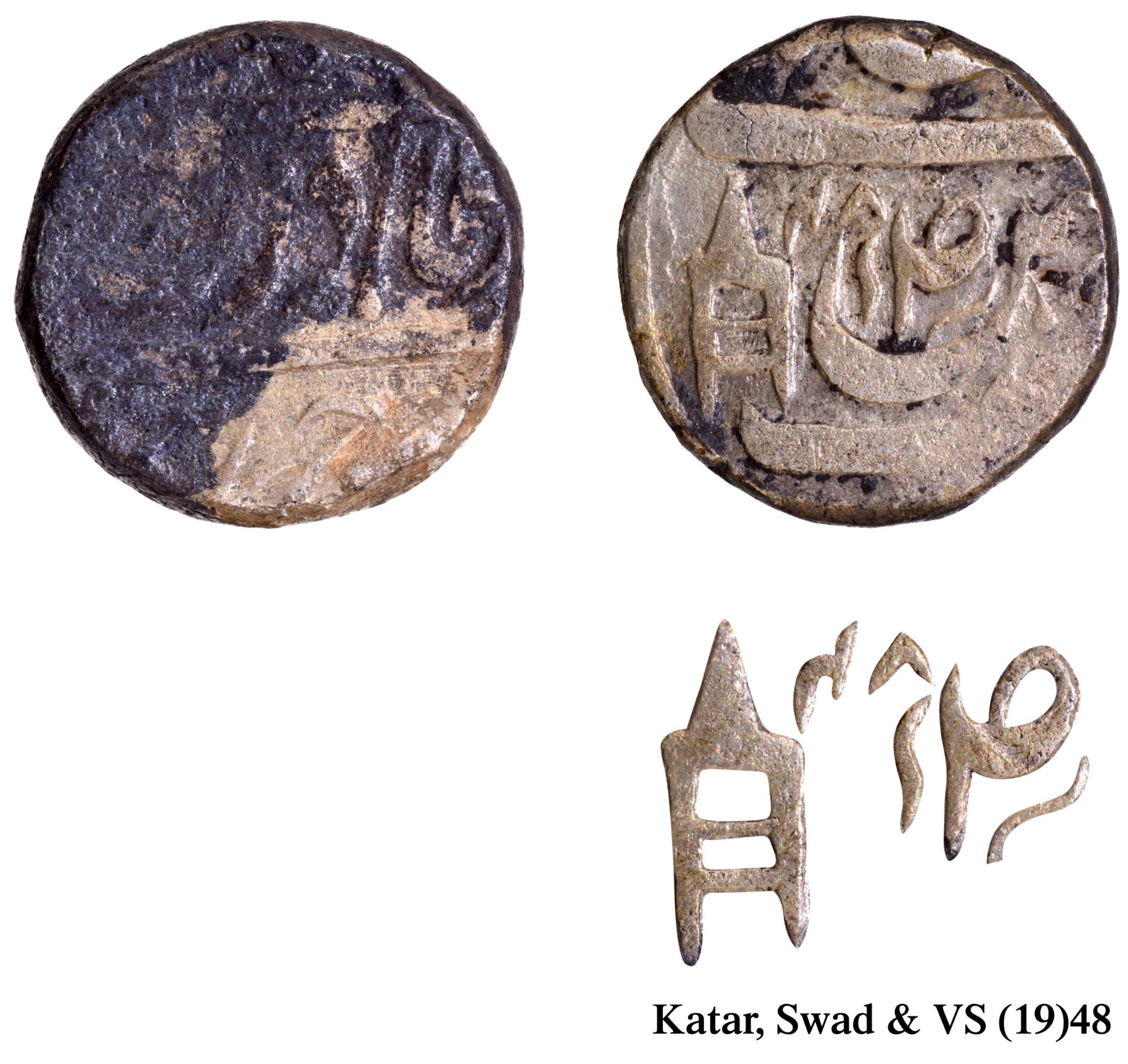 CIS-Patiala, Rajindar Singh (VS 1933-1957 /1876-1900 AD), Sahrind Mint (off flan), Silver Rupee, 'Qadir-e-Bechun' Couplet, VS (19)48, In the name of Ahmad Shah Durrani, Obv: Persian legend "hukm shud az qadir-e-bechun ba Ahmad Badshah, sikka-e-zan bar seem-o-zar az auj mahi ta bamah”, Rev: a symbol of "swad" in Persian letter 'seen' of Julus, the katar or Dagger symbol at the left of ‘seen’ of ‘Julus’, and Vikram Samvat year (19)48, "zarb Sahrind" off flan at the bottom, 10.9g, 18.69mm, (Unlisted in KM & Saran & Dalwinder # PT29ta), about extremely fine, Very Scarce.