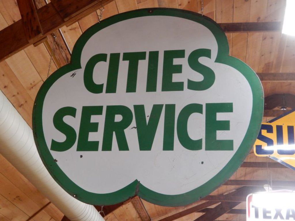 CITIES SERVICE DSP 70" X 72" SIGN SOME PORC LOSS - GOOD CONDITON LOCATION: UPPER HANGING
