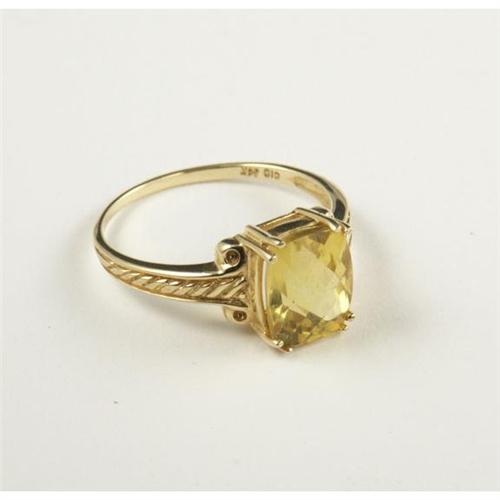 RING: Luminous 14k yellow gold lady's ring set with a cushion cut citrine. No appraisal is included with this lot.