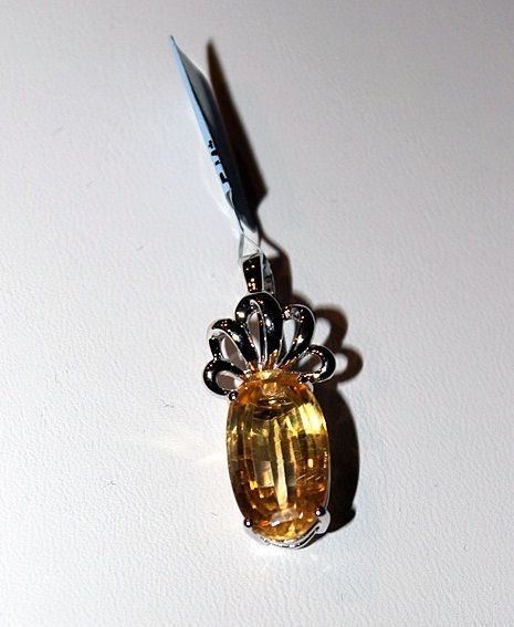 CITRINE AND SILVER PENDENT. CITRINE: 9.76CTW SILVER: 2.30G. RETAIL PRICE $348.00.