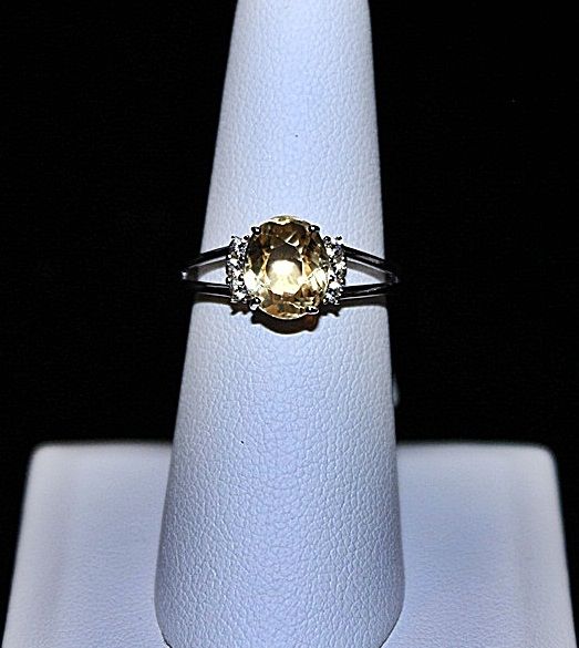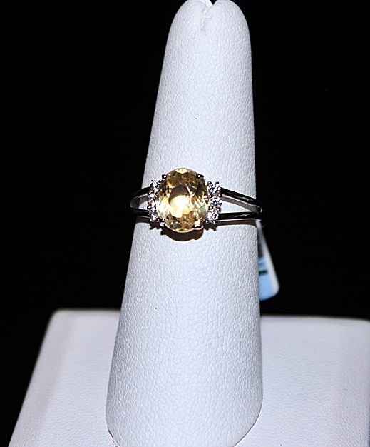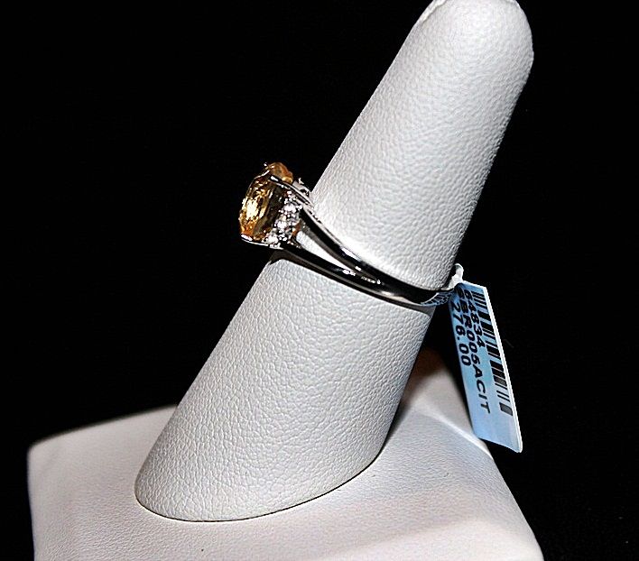SILVER RING WITH WHITE SAPPHIRES AND 1 CITRINE. CITRINE: 3.57CTW SILVER: 2.60G. RETAIL PRICE $276.00.