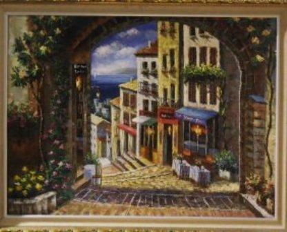 "CITY VIEW" ON CANVAS BY SPONE GILDED FRAME-SIGNED-41X52