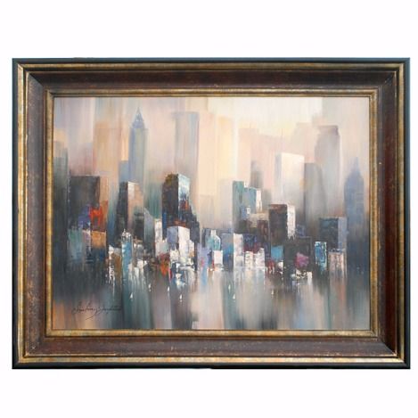 "CITYSCAPE - 1" - ORIGINAL HAND PAINTED OIL ON CANVAS - PROFESSIONALLY FRAMED - IMAGE 36x 48" - FRAMED 47x 59"
