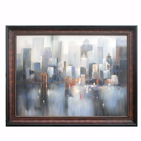 "CITYSCAPE - 2" - ORIGINAL HAND PAINTED OIL ON CANVAS - PROFESSIONALLY FRAMED - IMAGE 36x 48" - FRAMED 45x 57"