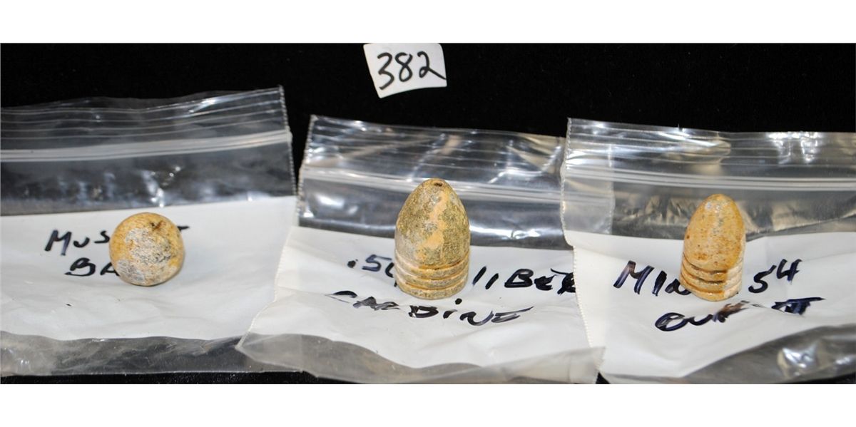 CIVIL WAR AMMUNITION 1861 - 1865 THREE GENUINE DIFFERENT TYPES/CALIBER - EXCELLENT CONDITION