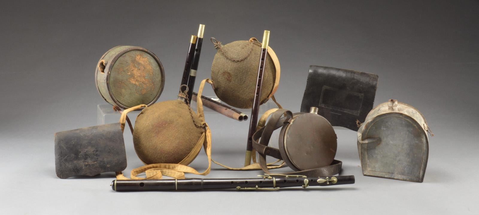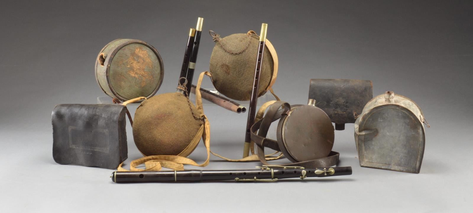 CIVIL WAR CANTEENS, FIFES & CARTRIDGE BOXES.
