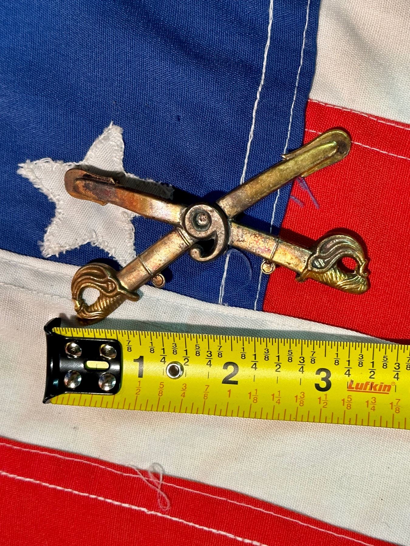 CIVIL WAR CROSSED SABER CAVALRY DIVISION 9 BADGE INSIGNIA. IT IS IN MINT OVERALL SHAPE AND CONDITION WITH A BEAUTIFUL OVERALL PATINA. A GREAT FIND AND AN EXCELLENT ADDITION TO YOUR COLLECTION.