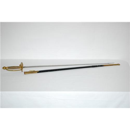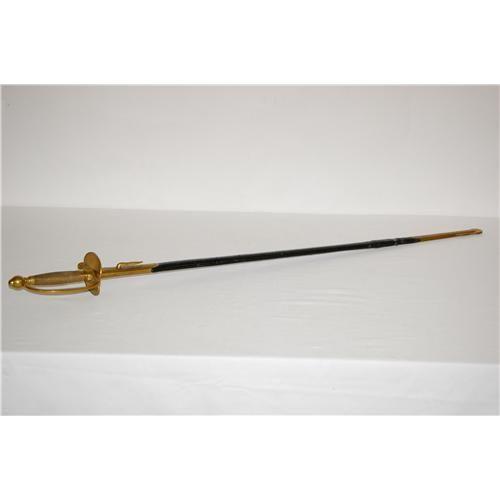 CIVIL WAR ERA AMES N.C.O. SWORD-MARKED AMES MFG. CO. CHICOPEE U.S.A. D.K. 1864 W/ LEATHER & BRASS SCABBARD, BRASS GUARD MARKED G.W.C. (38 1/2" TOTAL LENGTH; BLADE=31 3/4" L) - SWORD POLISHED, WEAR TO SCABBARD, IMPERFECTIONS;