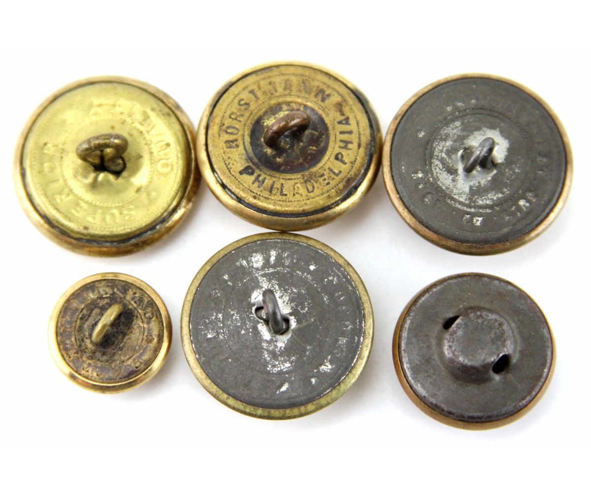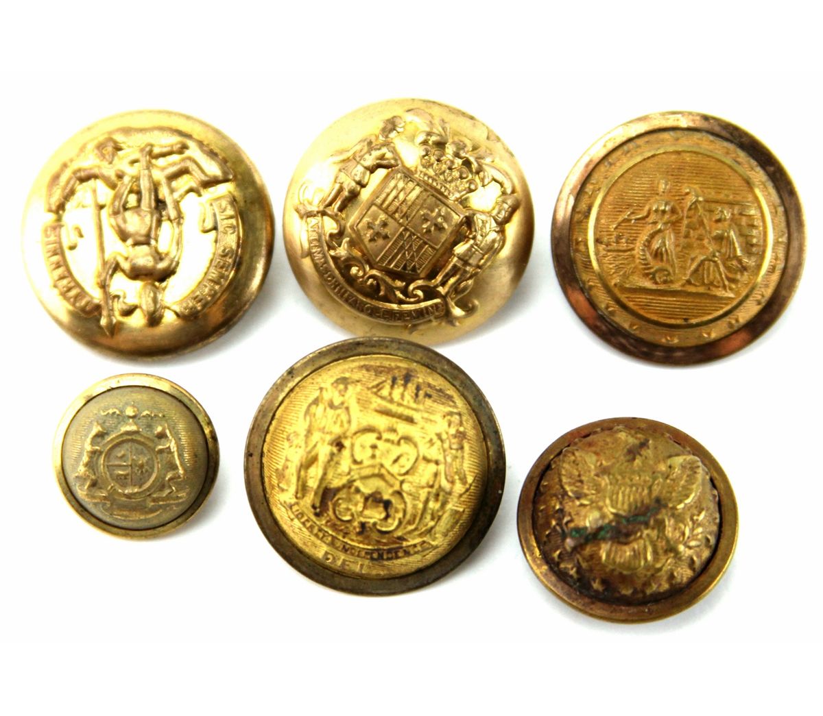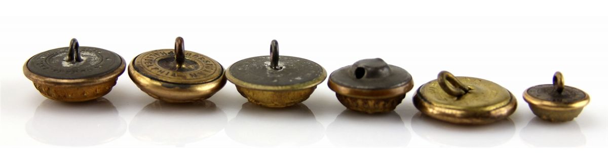 CIVIL WAR ERA BUTTON LOT OF 6 Goodwins Delaware, Federal, Virginia, Horstmann Maryland, small CSA, and Goodwins North Carolina buttons. Country: US Condition: Very good.