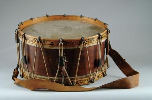 CIVIL WAR ERA DECORATED DRUM BY WILLIAM SEMPF, NEW YORK. Circa 1860. Inside label ""William Sempf Manufacturer of Base and Snare Drums 209 & 211 Grand St, New York"". An oval stamp is also inside stating ""Dixie White Olaf"". This is located on the drum head. There is a pencil signature next to the label ""76 TSU"". Outside of the drum has black decoration to the outside wood bands. Central band decorated with eagle and shield. The outside rope appears to have been replaced. The drum was owned by Frank George Horton who was the son of George Horton. Birthplace Cattaraugus County, New York around 1840 and settled in Illinois. It has descended in the family. Frank George Hor ton enlisted June 2, 1862. Discharged September 27, 1862 at the age of 21. 57th Co. Regiment of Illinois Bols Infantry. He re-enlisted for an unknown period of time afterwards. SIZE: 8-3/4in. x 16in. w. CONDITION: One split in drum head, generally very good. 9-99813