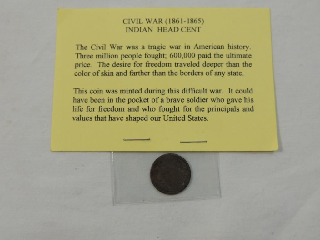 CIVIL WAR INDIAN HEAD CENT US CURRENCY COIN COLLECTIBLE. AS SHOWN SEE PHOTO FOR MORE DETAILS.