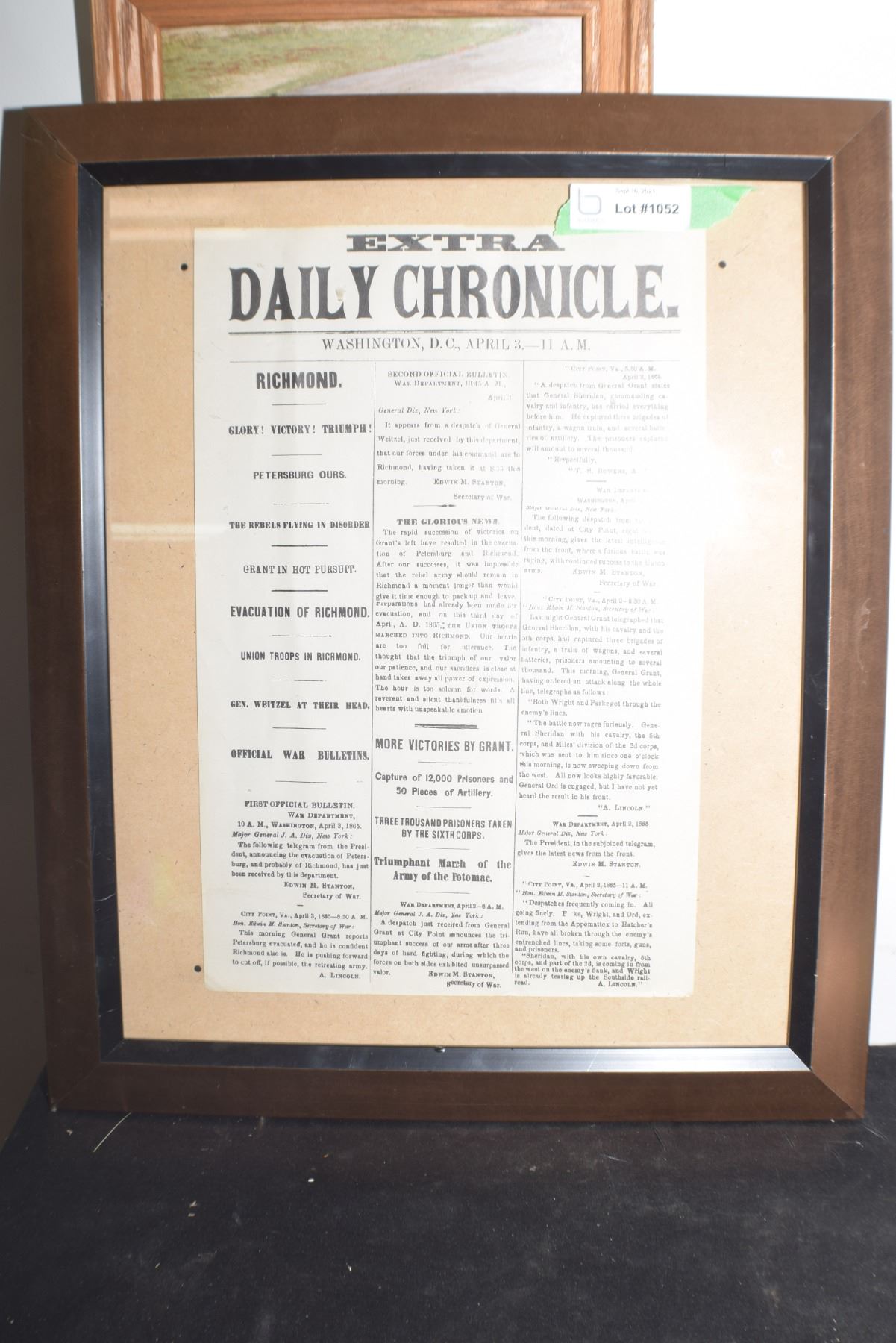 CIVIL WAR NEWSPAPER FRAMED COPY
