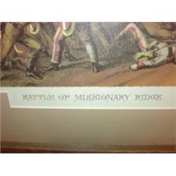 KURZ & ALLISON BATTLE OF MISSIONARY RIDGE PRINT from lithograph. Depicts battle scene from Battle of Missionary Ridge, Nov. 23-25, 1863. 28.25" x 22" framed.