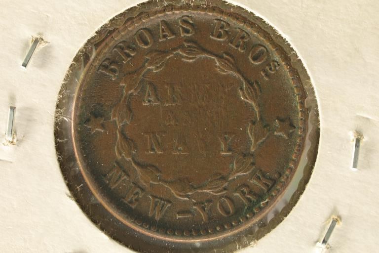 OBVERSE AND "BROAS BROS, ARMY & NAVY, NEW YORK" ON THE REVERSE