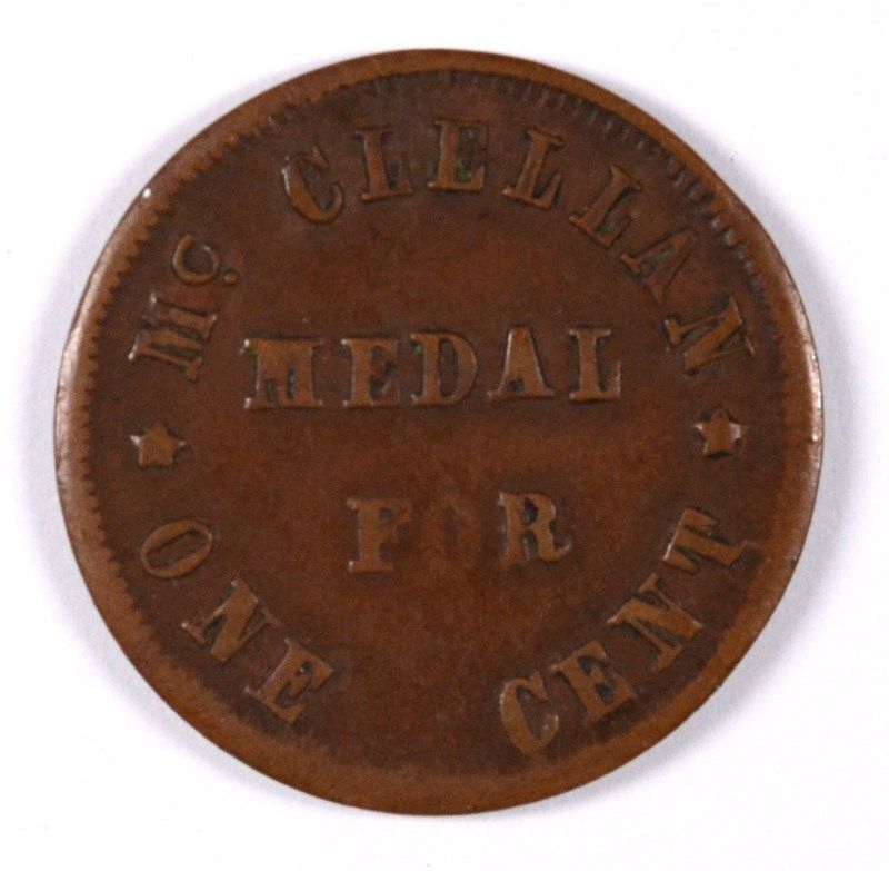 CIVIL WAR TOKEN, McCLELLAN MEDAL FOR ONE CENT