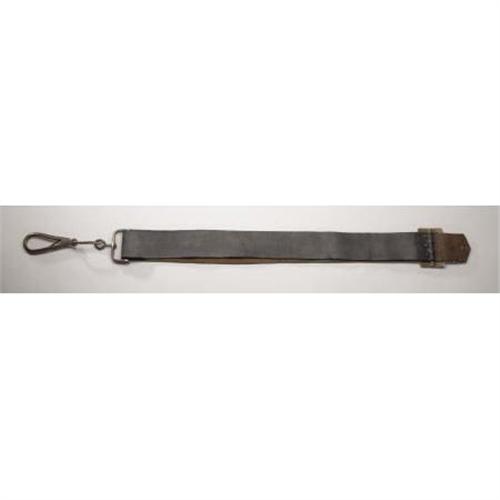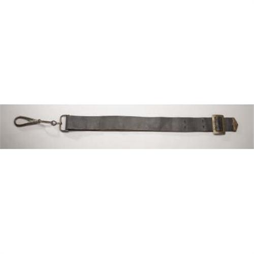 <B>CIVIL WAR U.S. CAVALRY CARBINE SLING AND SWIVEL- NICELY MARKED, ORIGINAL LENGTH.</B></I> The vast majority of these slings that surface on today’s market were cut when they were remanded to surplus. This one retains the original length and is overall a very fine example of this scarce and desirable piece of Civil War cavalry equipment.<BR> <BR><B>Condition:</B></I> 2 3/8” wide, black bridle leather, just some light crackling of the finish, very sound and supple, completely untouched and uncleaned. Strong arsenal sub inspector’s cartouche 8” above the tip. Original brass buckle and rivet fastened tip (one rivet loose but present). Iron snap swivel w/manufacturer’s mark of “E. Gaylord Chicopee, Mass.” and inspector “T. J. Shepard”. <BR><BR><b>Shipping:</b> Requires 3rd Party Shipping (<a target="_blank" href="http://www.heritageauctions.com/common/shipping.php">view shipping information</a>)