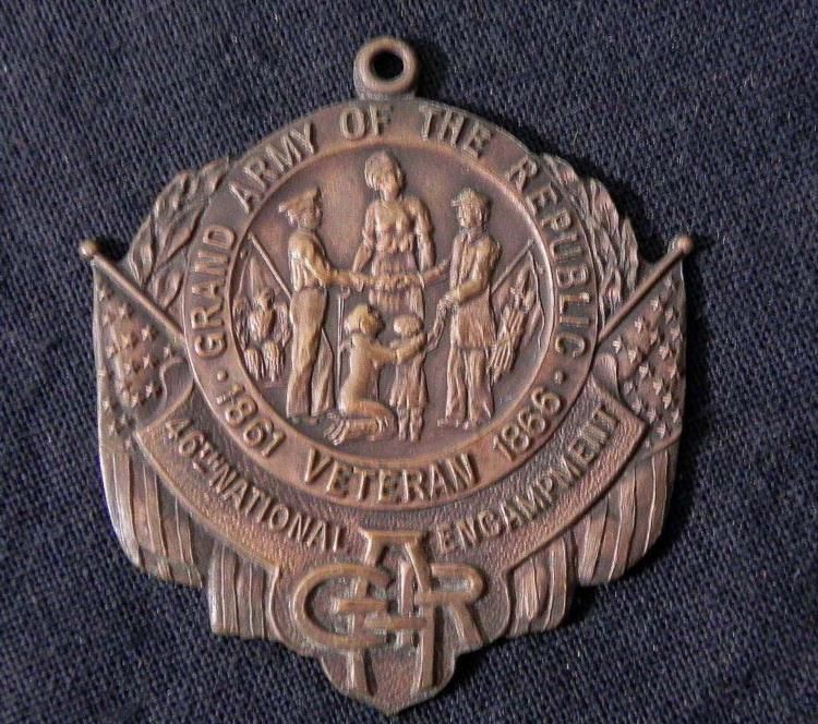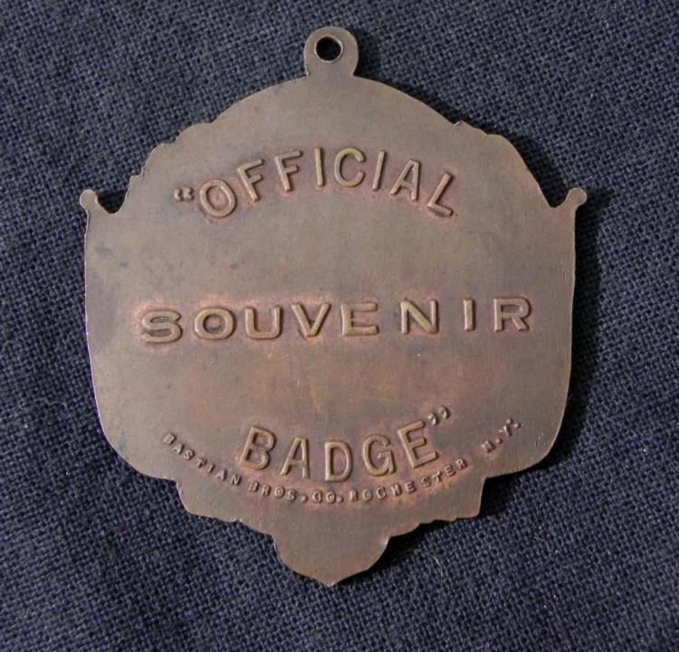 CIVIL WAR VETERANS "GAR" -46TH NATIONAL ENCAMPMENT BADGE-MAKER MARKED REVERSE GREAT ORIGINAL BADGE