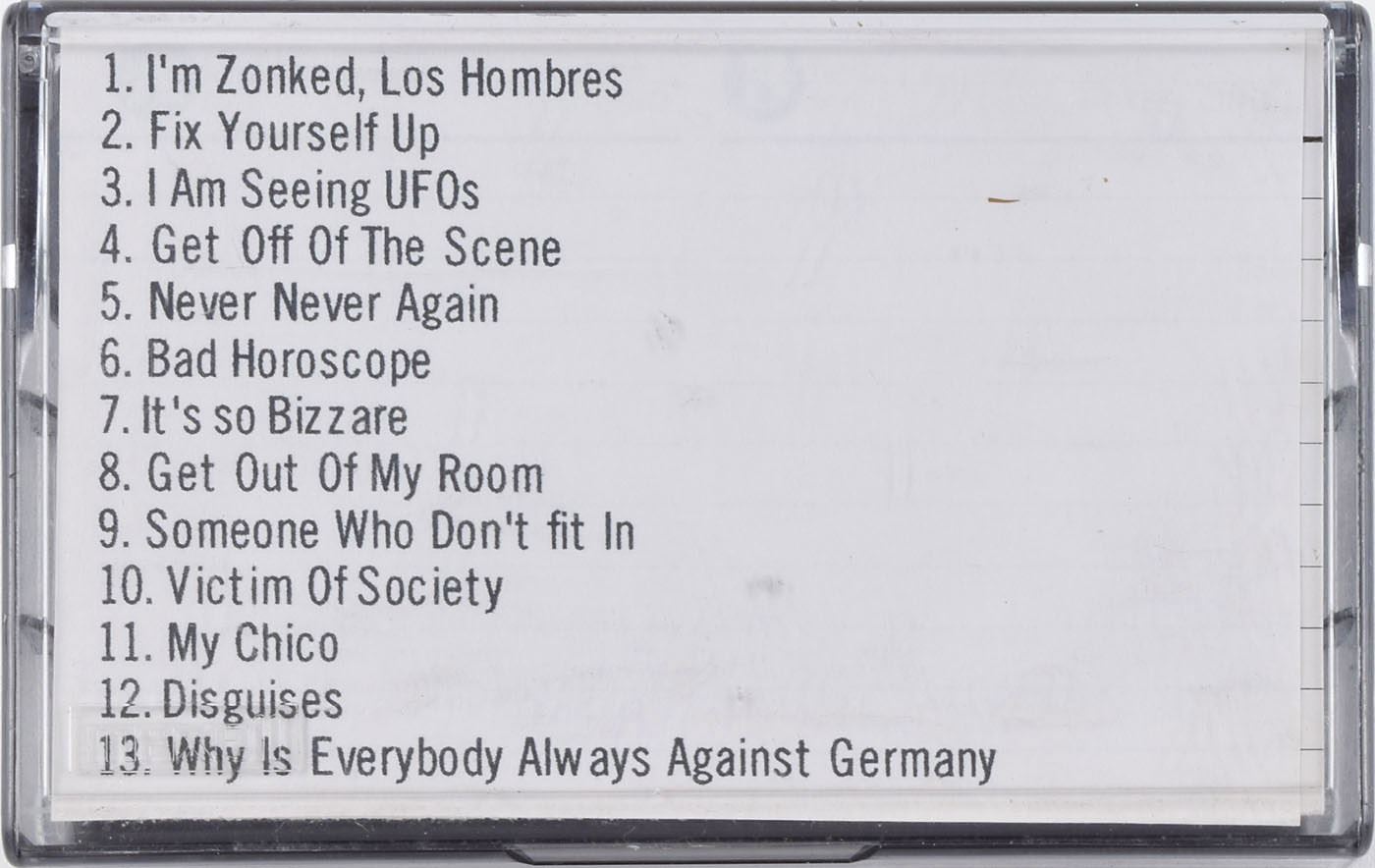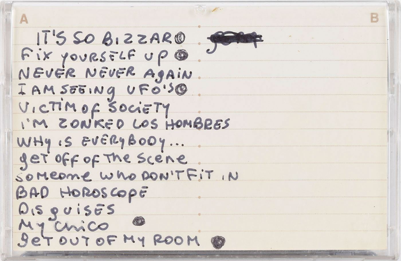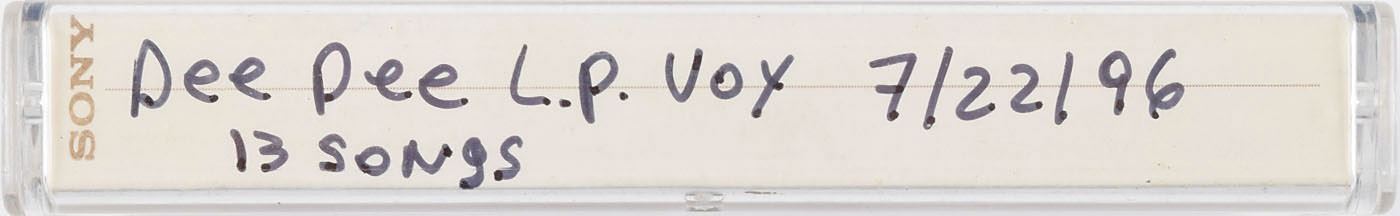 Rare pairing of two Dee Dee Ramone tapes associated with his 1997 solo album Zonked!, from CJ Ramone's personal collection: one featuring premixes, marked on the spine in Dee Dee's hand, "Dee Dee L.P. Vox 7/22/96, 13 Songs," with a handwritten track list by Dee Dee Ramone in a different order from the released album; and the other featuring a printed label identifying it as "Dee Dee Ramone - L.P.," with an identical track listing to the final version of the album as released, given to CJ to learn the set for The Remainz. In overall fine condition. Includes audio CDs of each of the tapes. A complete track listing is available online at RRAuction.com.
