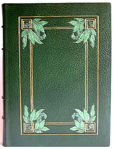 CLADEL, Judith.- Auguste Rodin. L'œuvre et l'homme. Préface par Camille Lemonnier. Bruxelles, G. Van Oest, 1908. In-4°. Relié par J[uliette ?]. La Bruyère : plein maroquin vert, plats sertis de filets dorés avec grandes feuilles mosaïquées en vert tendre, dos à nerfs, filets dorés sur les coupes et remplis, tête dorée, couv. et dos cons. Sous chemise en demi-maroquin à petits rabats (dos passé), sous étui.
