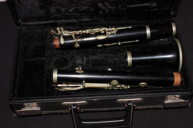 CLARINET IN ORIGINAL CASE - MOUTHPIECE MISSING - SOLID HEAVY PLASTIC