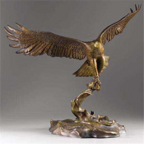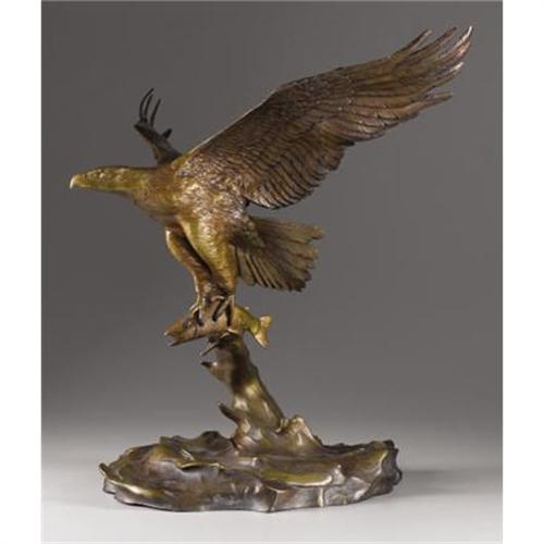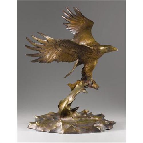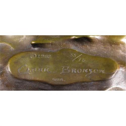 <B>CLARK BRONSON (b. 1939)</B></I><BR><I>Majestic Fisherman</B></I>, 1982<BR>Bronze<BR>20-1/2 x 22 x 15-1/2 inches (52.1 x 55.9 x 39.4 cm)<BR>Signed, dated, and numbered at base<BR><BR> <BR>Clark E. Bronson is a sculptor and draftsman of wildlife and animal subjects. He was a founding member of the National Association of Western Artists (NAWA) and one of America's leading big game sculptors.<BR><BR><b>Shipping:</b> Requires 3rd Party Shipping (<a target="_blank" href="http://www.heritageauctions.com/common/shipping.php">view shipping information</a>)<BR><BR><B>Important notice