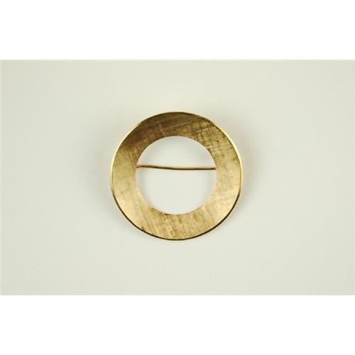Classic 14k Yellow Gold CIRCLE pin.It has a brushed gold 'florentined' finish and it measures1 1/4" across. It is in excellent condition and it would make a wonderful gift.