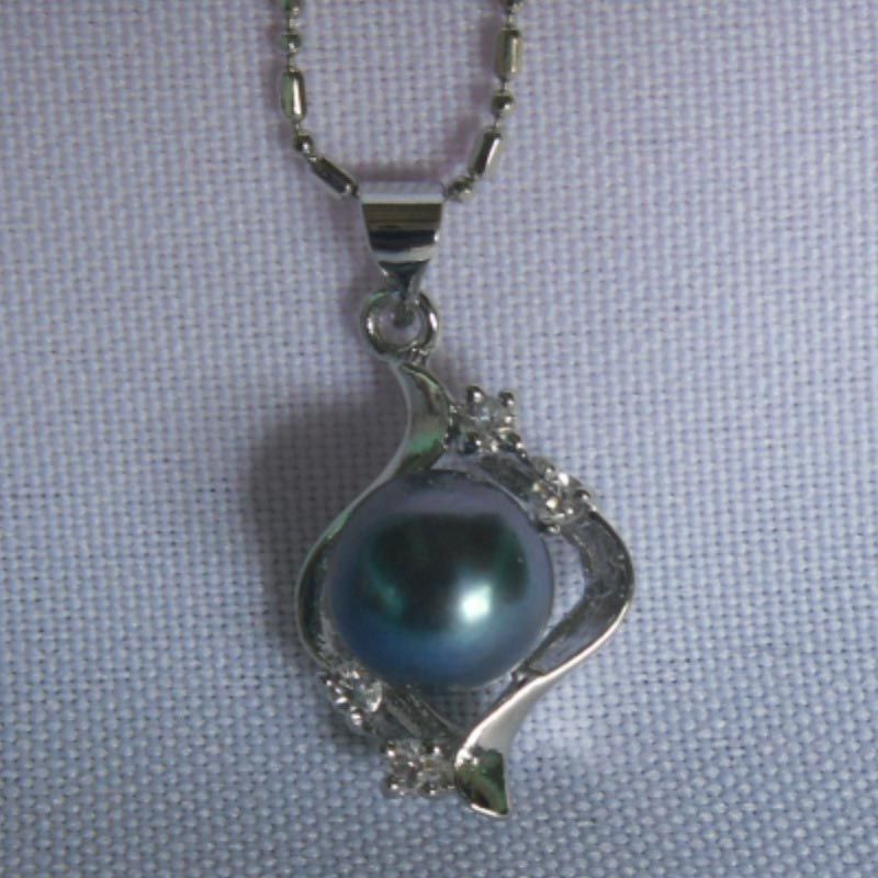 CLASSIC BLUISH PEARL CZ NECKLACE; AUTHENTIC PHILIPPINE **|**|** CLASSIC BLUISH PEARL CZ NECKLACE; AUTHENTIC PHILIPPINE PEARL; METAL- SILVER ; MSRP: $300