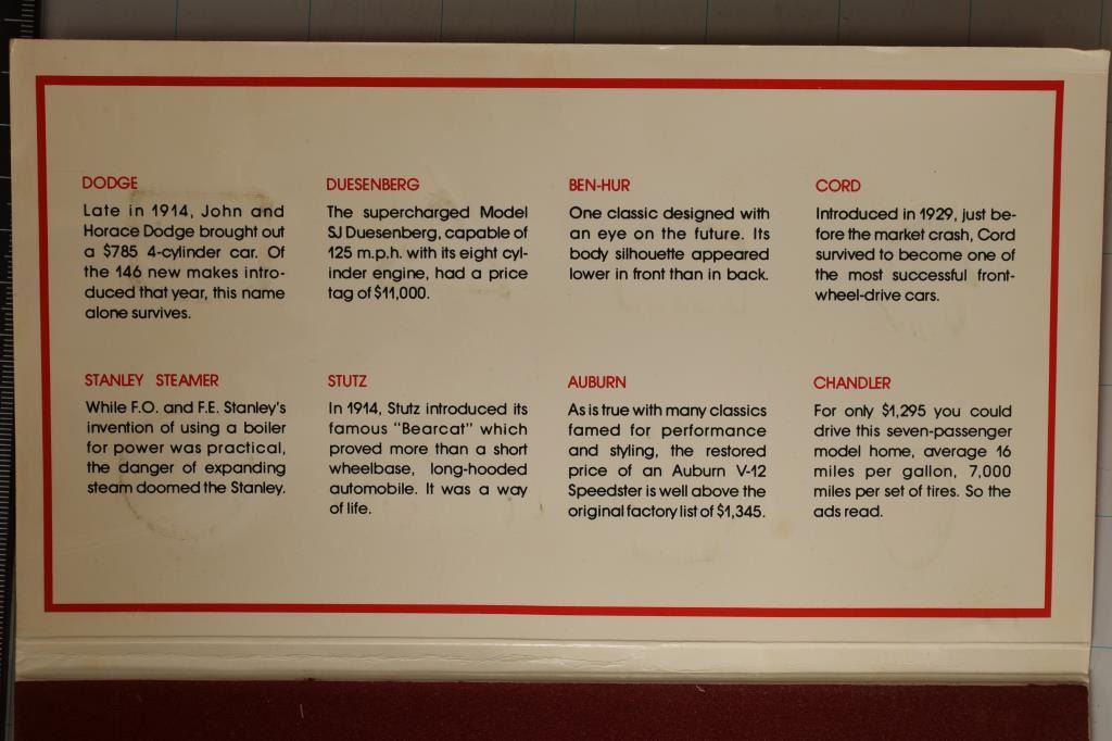 BEN-HUR, CORD, STANLEY STEAMER, STUTZ, AUBURN AND CHANDLER. ALL PACKAGED IN FLIP DISPLAY CARD FROM THE DODGE CHRYSLER MOTORS CORPORATION