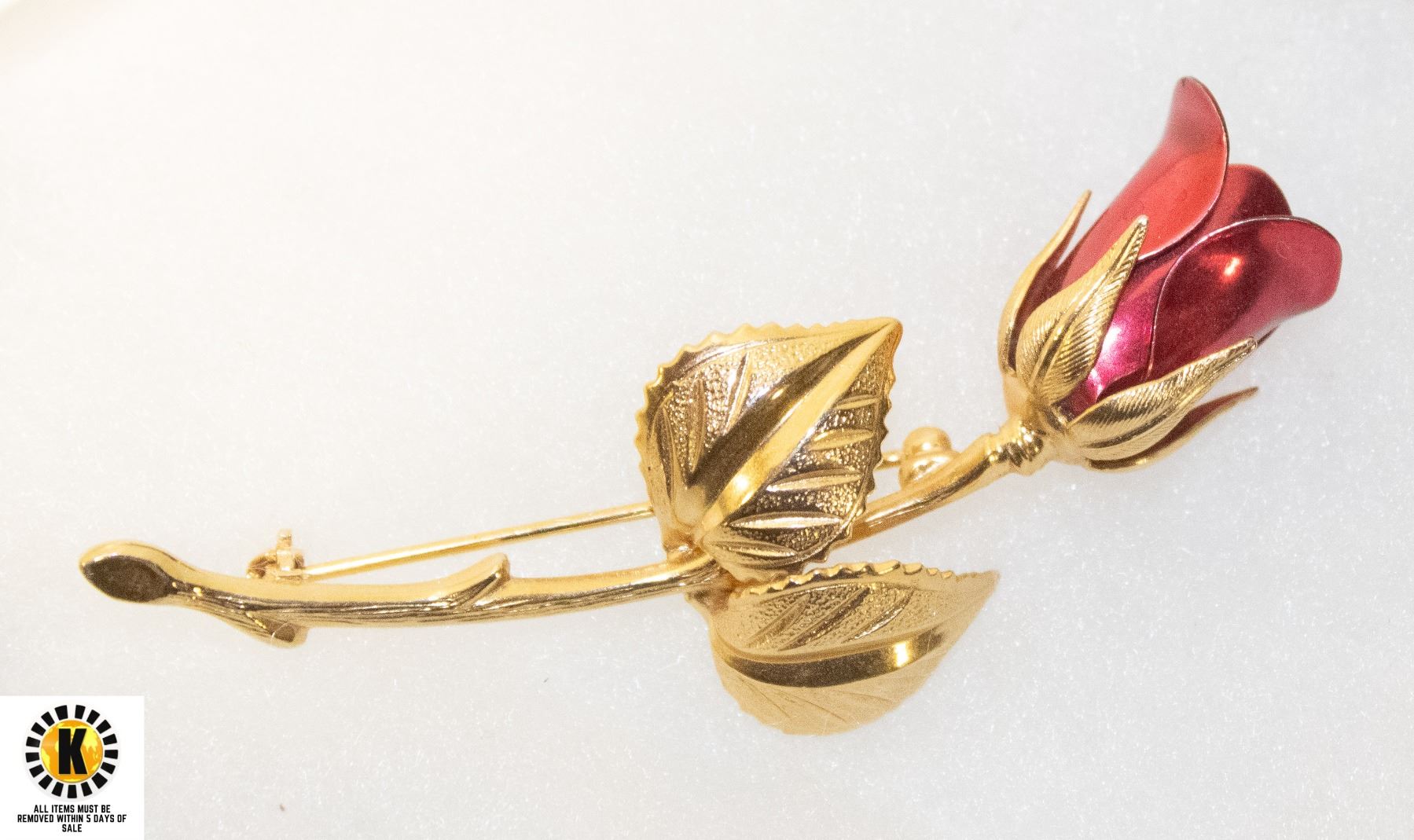 CLASSIC GOLDTONE RED ROSE METAL BROOCH
