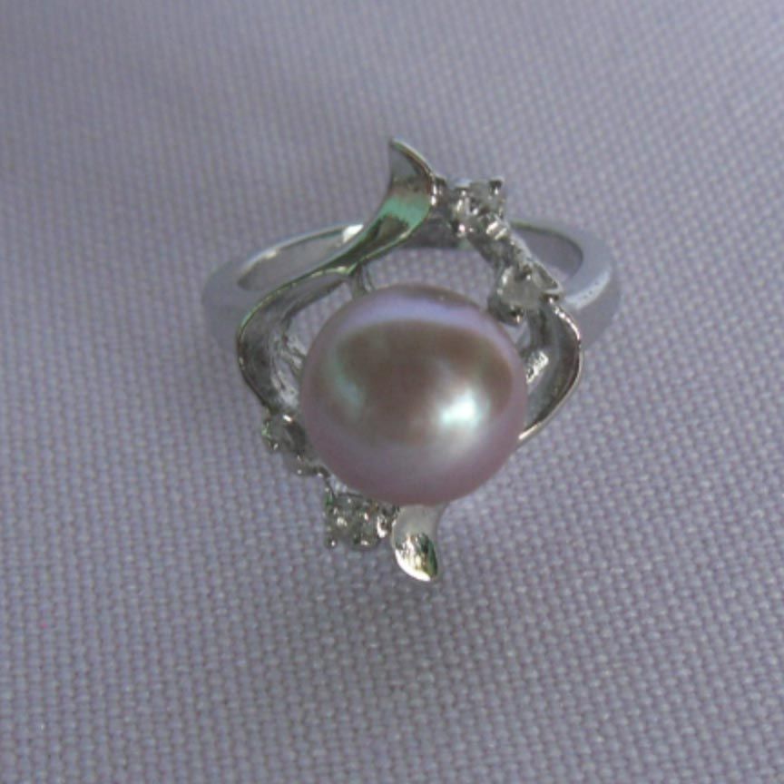 CLASSIC LAVENDER PEARL CZ RING; AUTHENTIC PHILIPPINE PE **|**|** CLASSIC LAVENDER PEARL CZ RING; AUTHENTIC PHILIPPINE PEARL; METAL- SILVER; SIZE-7 ; MSRP: $300