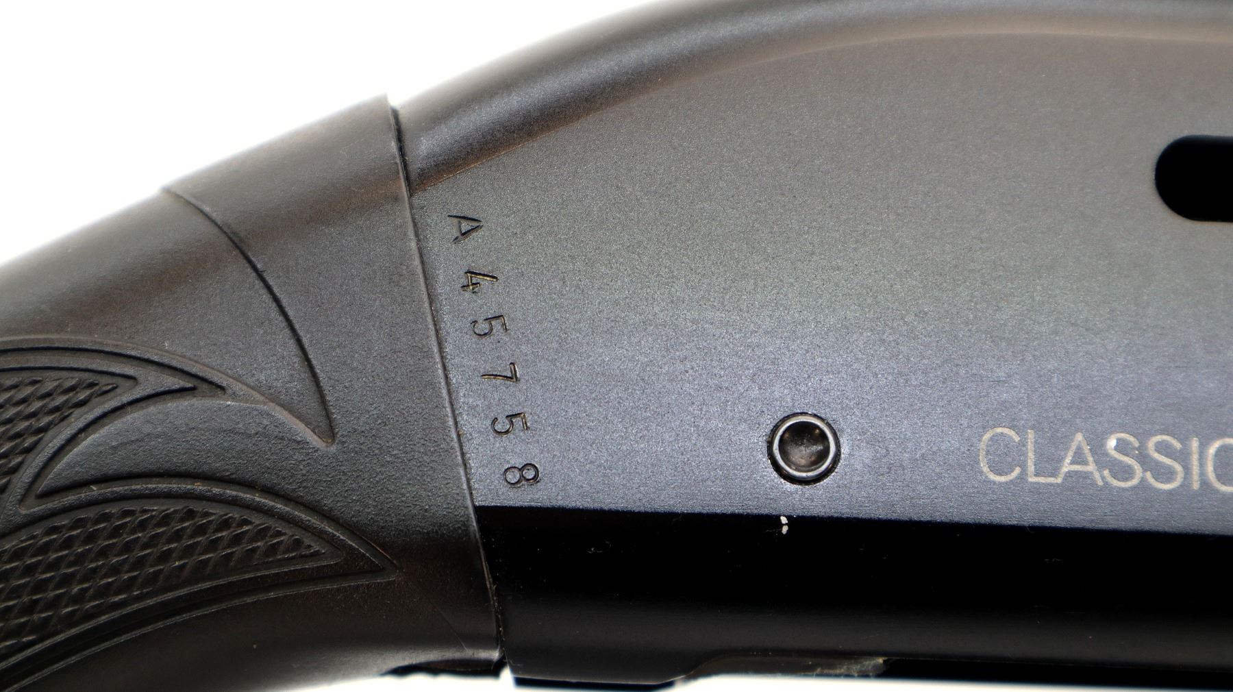 Main Description: Silver bead, parkerized vent rib barrel, grooved black alloy receiver. Two piece black synthetic stocks, checkered forearm and pistol grip, black polymer butt plate, grip cap, sling swivels. Note: This shotgun is missing the extractor assembly, trigger mech is broken parts are included, possibly not complete.