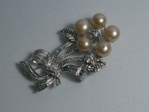 CLASSIC PEACH PEARL CZ BROOCH AUTHENTIC PHILIPPINE PEAR **|**|** CLASSIC PEACH PEARL CZ BROOCH AUTHENTIC PHILIPPINE PEARL METAL SILVER ; MSRP: $150