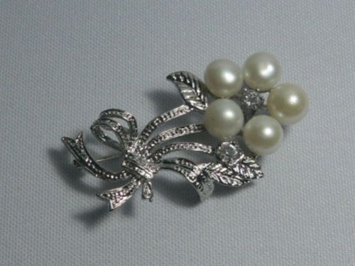 CLASSIC WHITE PEARL CZ BROOCH AUTHENTIC PHILIPPINE PEAR **|**|** CLASSIC WHITE PEARL CZ BROOCH AUTHENTIC PHILIPPINE PEARL METAL SILVER ; MSRP: $150