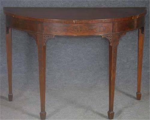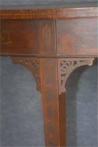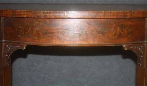 CLASSICAL MAHOGANY PAINTED CONSOLE TABLE with decorated medallion and scroll work height: 30",width:45" depth: 30"