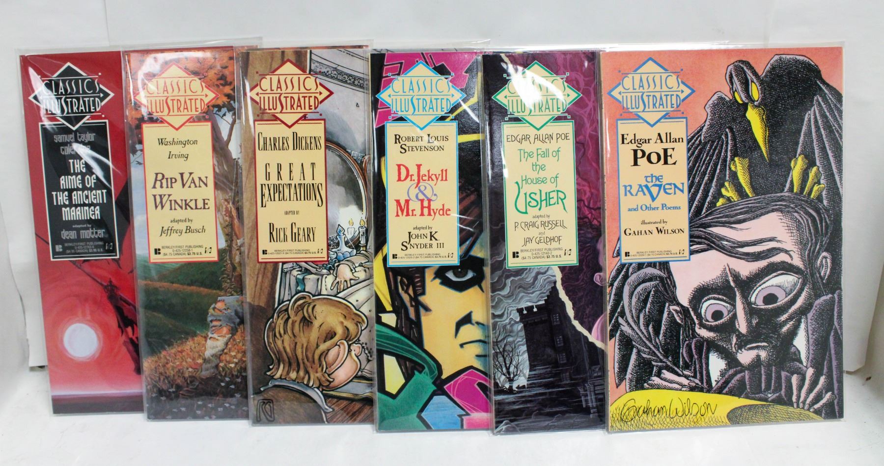 STARTING AT #1; THE RAVEN (EDGAR ALLAN POE), FALL OF THE HOUSE OF USHER (EDGAR ALLAN POE), DR JEKYLL & MR HYDE (ROBERT LOUIS STEVENSON), GREAT EXPECTATIONS (CHARLES DICKENS), RIP VAN WINKLE (WASHINGTON IRVING), RIME OF THE ANCIENT MARINER (SAMUEL TAY