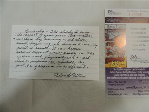 CLAUDE OSTEEN SIGNATURE AUTOGRAPH ON CARD COA. INCLUDES COA FROM JAS #J50068. AS SHOWN. VIEW PICTURE FOR DETAIL. PLEASE BE ADVISED, AND INFORMED REGARDING SIGNATURES OR AUTOGRAPHS THAT WE SELL AT AUCTION: WE ARE NOT AUTHENTICATORS, AND WE DO NOT AUTHENTICATE, OR VALIDATE ANY AUTOGRAPHS OR SIGNATURES THAT WE OFFER AT AUCTION. SOME AUTOGRAPHS OR SIGNATURES MAY COME WITH AN AUTHENTICATION FROM ANY ONE OF LITERALLY HUNDREDS OF AUTHENTICATORS ACROSS THE COUNTRY, AND AROUND THE WORLD. WE DO NOT ENDORSE ANY AUTHENTICATOR, NOR DO WE GUARANTEE THAT ANY AUTOGRAPH OR SIGNATURE IS AUTHENTIC, OR THAT IT WILL PASS AUTHENTICATION BY ANY AUTHENTICATOR. ALL AUTOGRAPHS OR SIGNATURES ARE SOLD