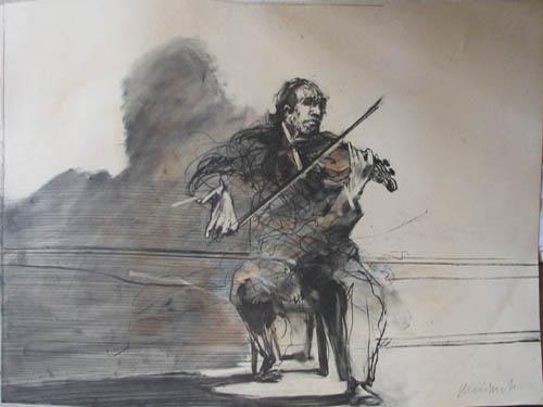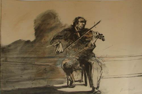 CLAUDE WEISBUCH Violinist orig litho