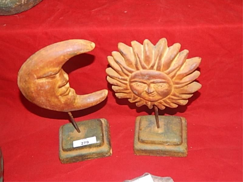 CLAY POTTERY - SUN & MOON ON STANDS = 2PC TOTAL