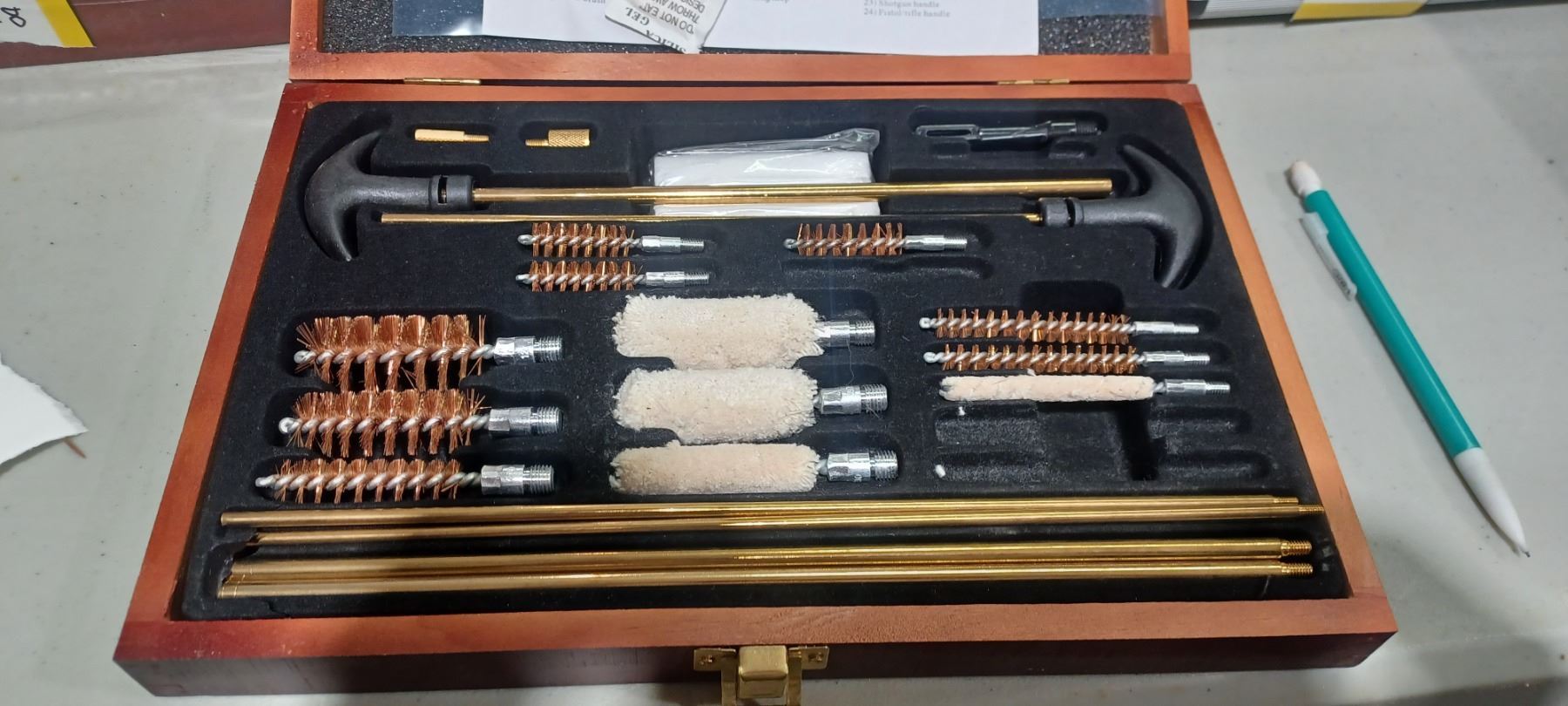 CLEANING KIT 22. CAL TO 12GA C/W WOOD BOX