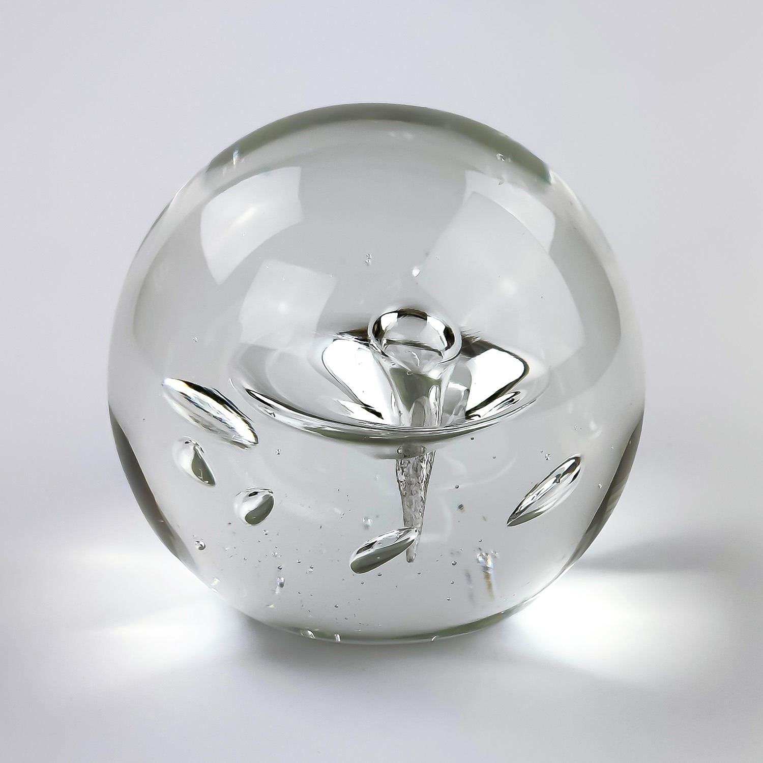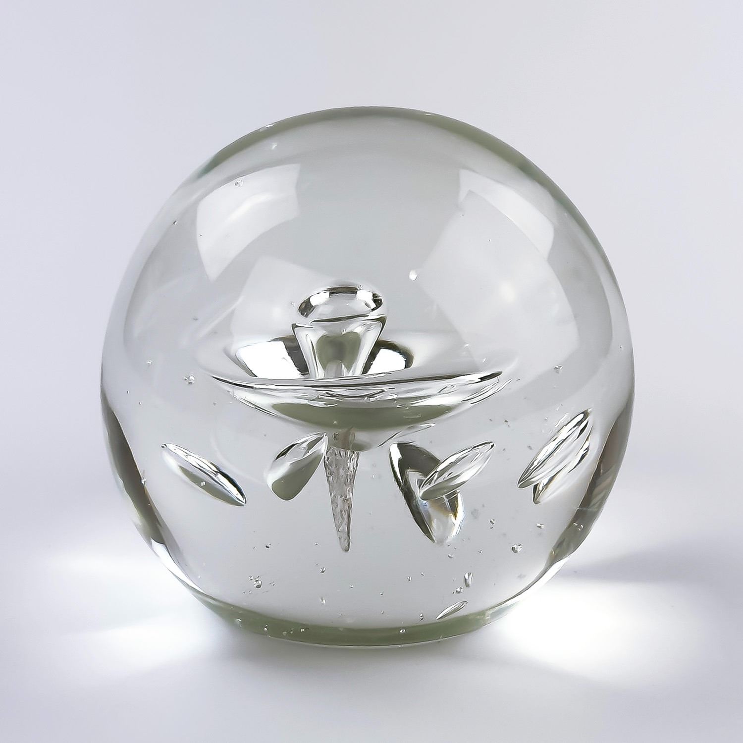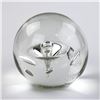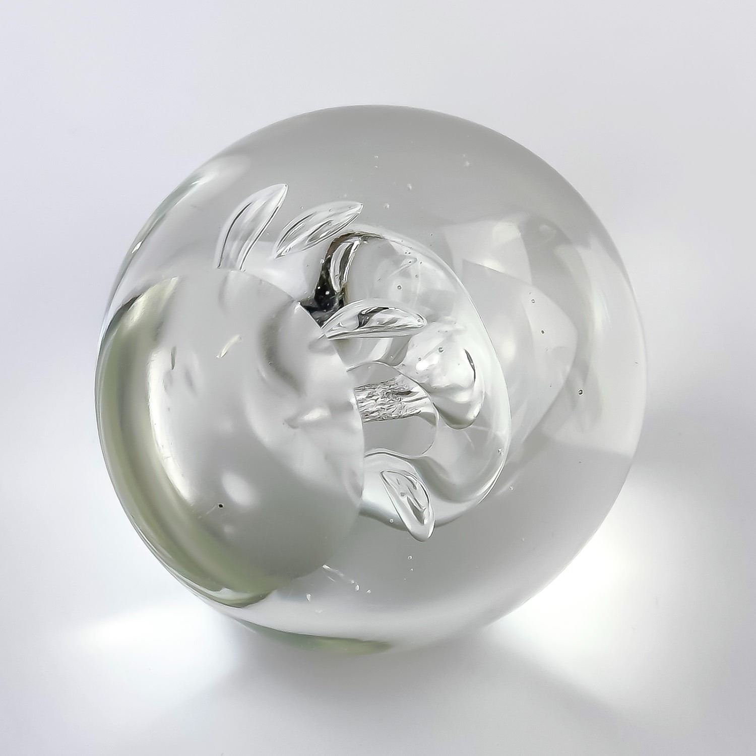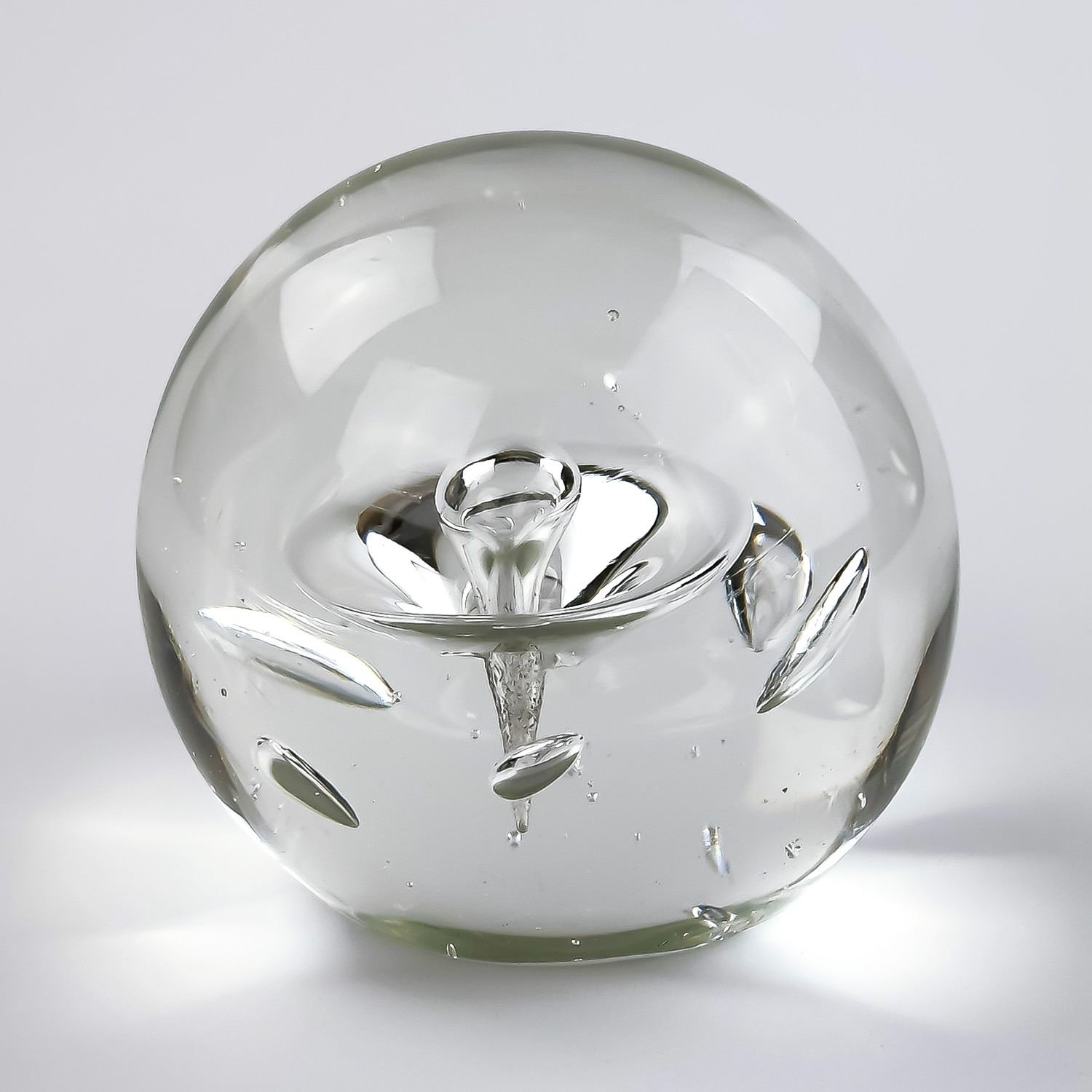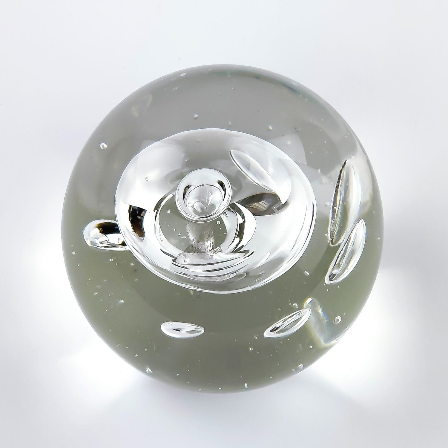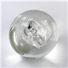 #8146 - ART GLASS ROUND PAPERWEIGHT - TORNADO-LIKE ABSTRACT BUBBLE DESIGN THEME IN GLASS. WEIGHTS 725 GRAMS (1.60 POUNDS) AND IS ROUGHLY 3.25” (8.25 CM) DIAMETER AND SITS 3” (7.5 CM) HIGH