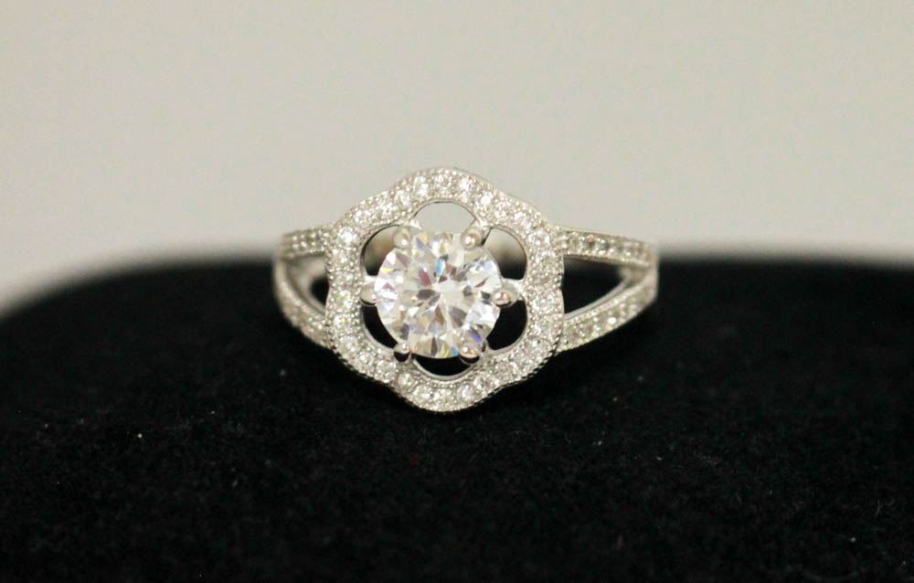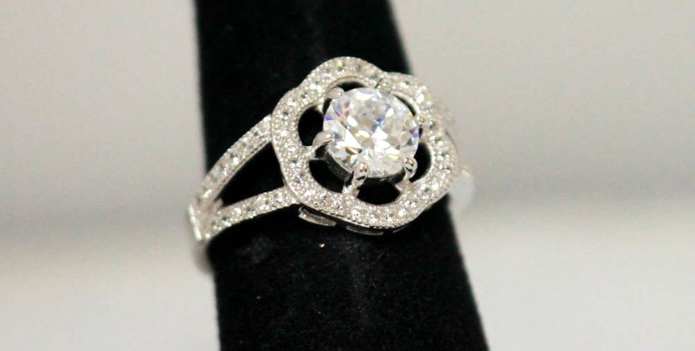 CLEAR CZ FLOWER RING .925 STERLING SILVER **|**|** CLEAR CZ FLOWER RING .925 STERLING SILVER