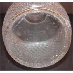 CLEAR GLASS DECANTER WITH STOPPER. Studded body. 11.5" H
