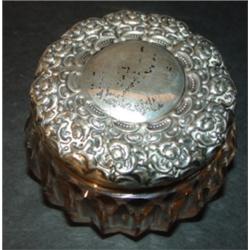 CLEAR GLASS DRESSER JAR WITH SILVER LID. Lid is unmarked. 1.5" H