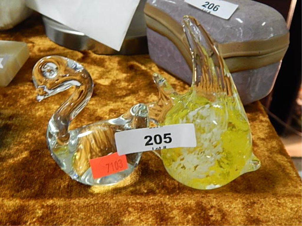 CLEAR GLASS SWAN & YELLOW GLASS FISH