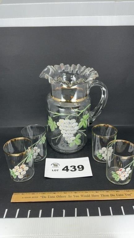 CLEAR HAND PAINTED VICTORIAN LEMONADE PITCHER, 4
