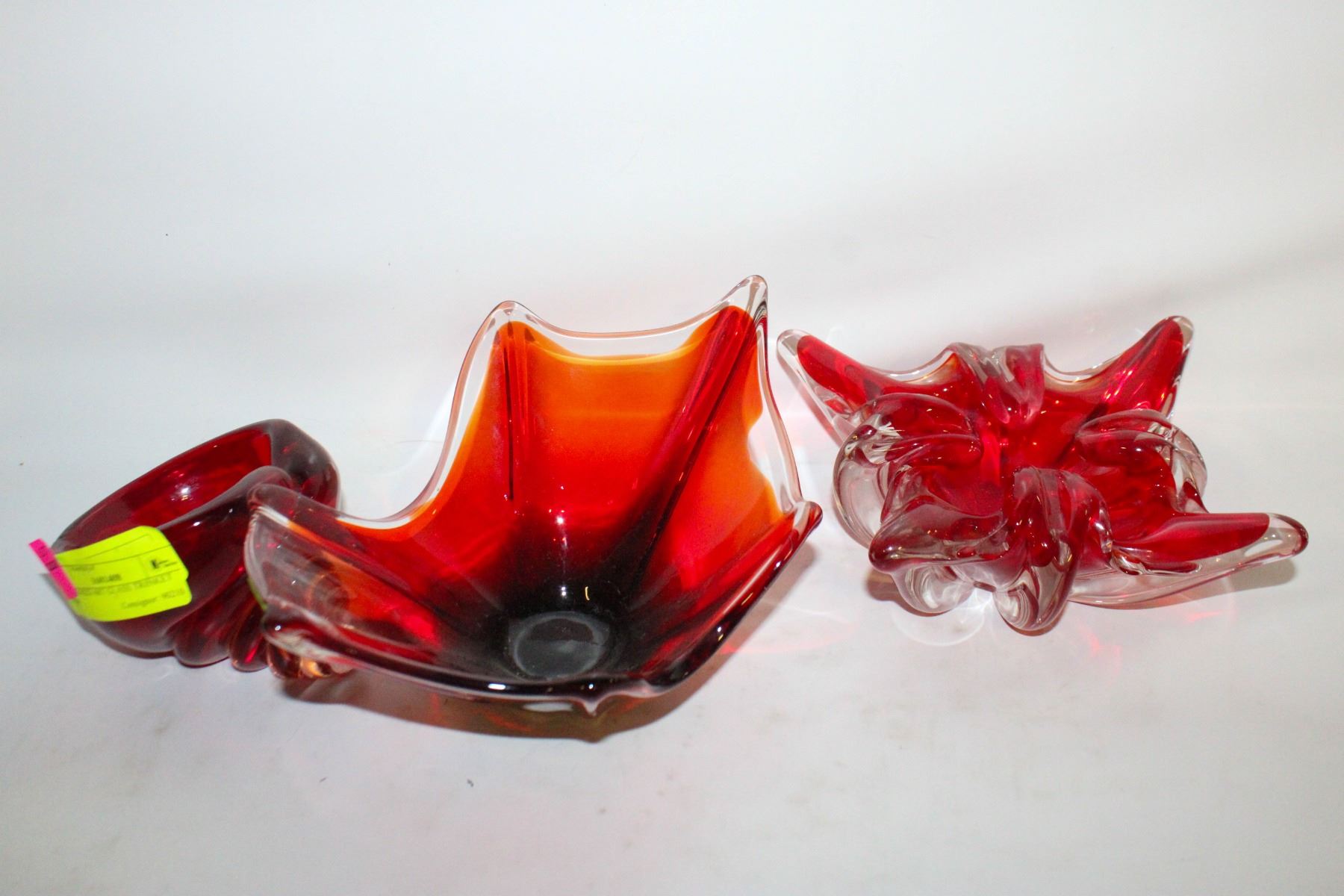 CLEAR/RED ART GLASS TRINKET DISH
