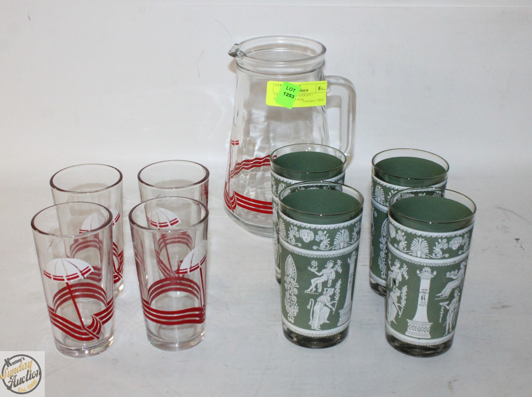 4 GREEN EGYPTIAN STYLE MATCHING GLASSES **ALL ITEMS MUST BE REMOVED BY 5PM SATURDAY, AUGUST 16TH 2025. ALL REMAINING ITEMS WILL BE SUBJECT TO A $6.00 PER DAY STORAGE CHARGE. ANY ITEMS REMAINING AFTER MONDAY, SEPTEMBER 1ST 2025 WILL BE CONSIDERED FORFEITED. NO REFUNDS WILL BE ISSUED FOR FORFEITED ITEMS. TO SCHEDULE A PICK UP APPOINTMENT CLICK HERE