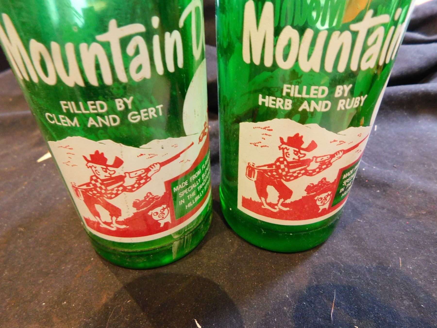 CLEM AND GERT, HERB AND RUBY SCARCE NAME MOUNTAIN DEW HILLBILLY BOTTLES