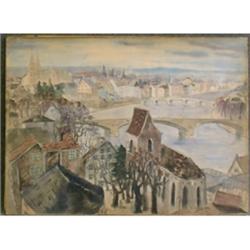 CLERGÉ, Auguste Joseph, 1891-1963. "A View of a French Town". Aquarelle, signée....
