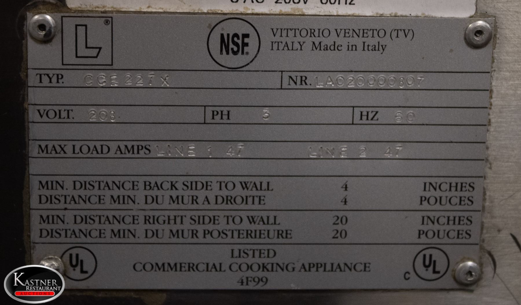ON CASTORS, MODEL # CCE227 , 208 VOLTS, PHASE 3, 60 HZ, 42" X 42" X 76" ** TOP COMBI OVEN IS MISSING DOOR LATCH **